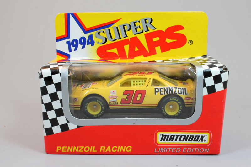 Design & Text: Red/black stripes, bell logo, 30 / Pennzoil / Michael Waltrip