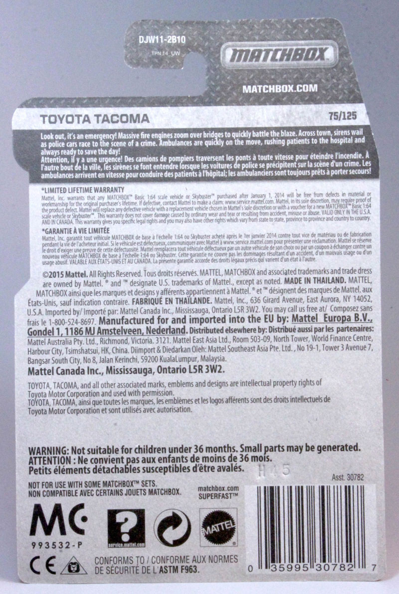 Model Name on the Pkg: Toyota Tacoma